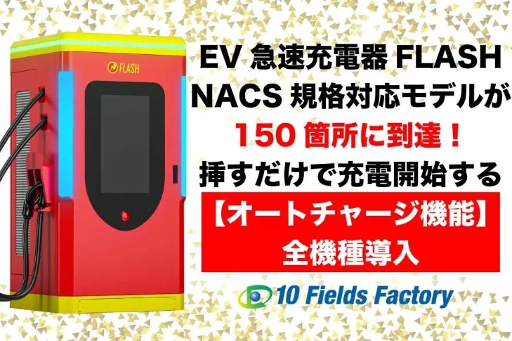 テンフィールズファクトリー株式会社(本社:京都府相楽郡精華町光台1-7けいはんなプラザ9F、代表取締役:市川 裕、以下「当社」)は、当社が展開するEV急速充電器「FLASH」において、テスラ車などで採用されているNACS規格(北米充電規格)対応モデルの設置箇所が、この度2026年2月をもって国内累計150箇所(合計185台)に到達したことをお知らせいたします。